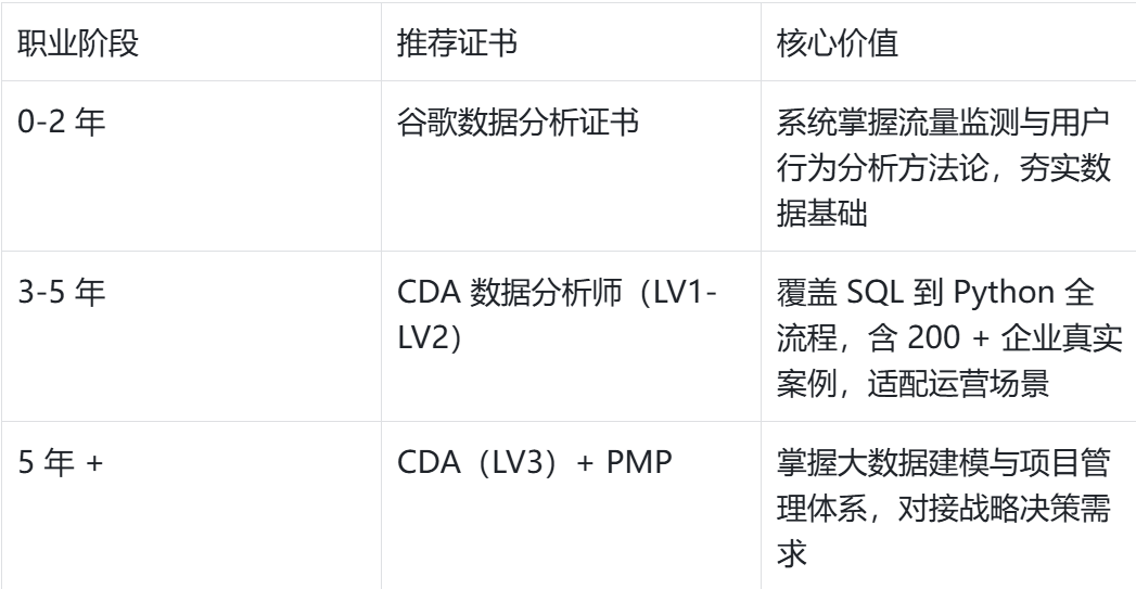 数据能力进阶:控制 Python 从动化报表取根本模子预测,58% 持证者 1 年内实现晋升。可间接移植到营业中,此中,是冲破职场天花板的环节。当你能用数据言语决策、用生态思维规划结构,某教育产物运营曾借此实现 ROI 提拔 5 倍。却常陷入 “做勾当、盯数据、忙协调” 的轮回 —— 若何跳出施行圈套,CDA 认证供给 Excel→SQL→Python→机械进修 的阶梯式框架,